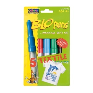 Flomasteriai "BLO PENS" tekstilei piešia oro pagalba. Pučiant į vamzdelį, esantį flomasteryje, audinis pasidengia smulkiais spalvotais taškeliais. Įdomus spalvinis efektas gaunasi, jeigu išpūsti kelias spalvas vieną ant kitos. Taip pat galima naudoti kaip įprastą flomasterį, piešiantį plona linija.