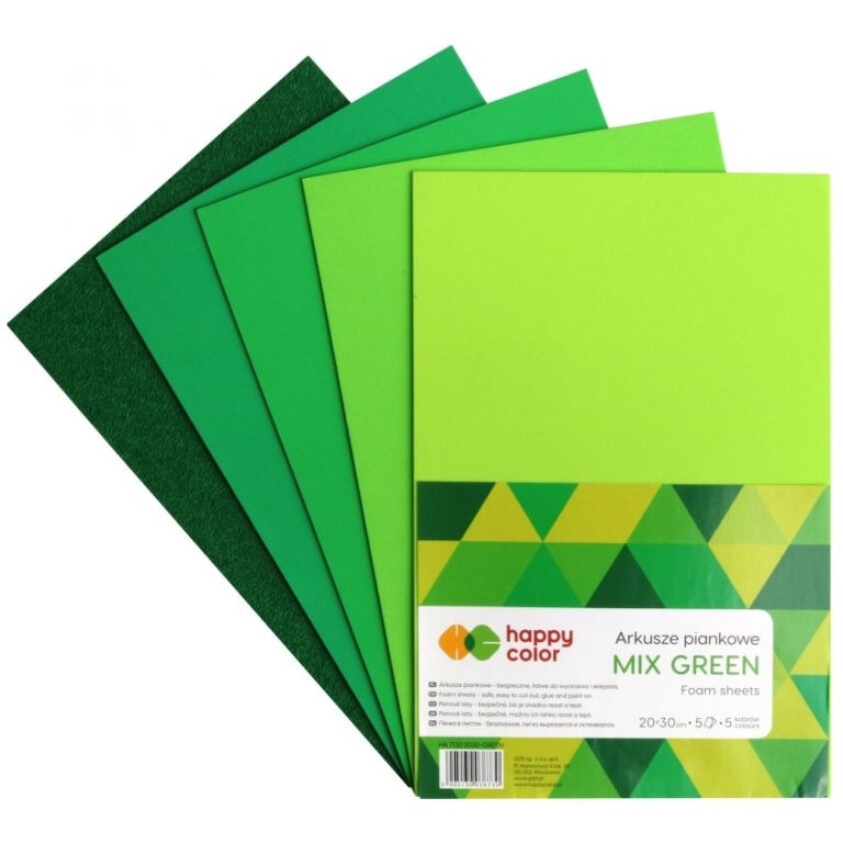 Putgumės lakštų rinkinys A4, 5lapai žalių spalvų HAPPY COLOR