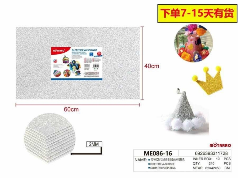 Putgumės lapas 400x600mm 2mm su blizgučiais sidabro spalvos MOTARRO