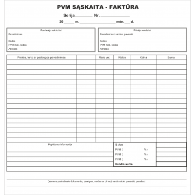 PVM sąskaita faktūra 8 col.x2x50 200x210mm be numeracijos
