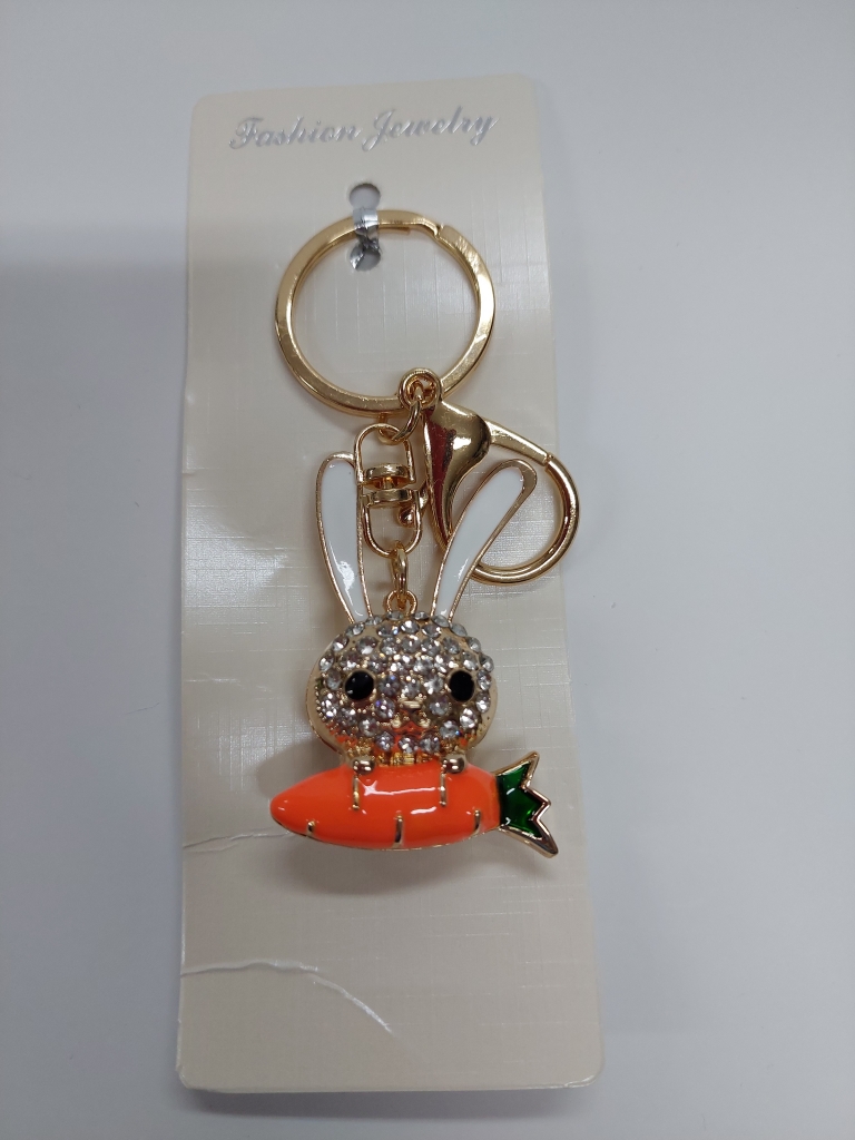 Raktų pakabukas, blizgantis zuikis su morka, metalinis įv.spalų