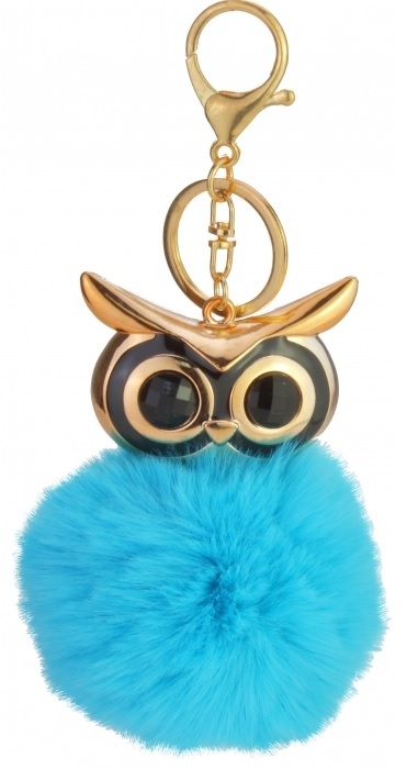 Raktų pakabukas OWL, 60x100mm, mėlynos ir aukso sp., pūkuotas