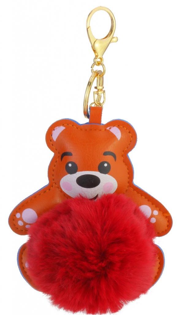 Raktų pakabukas TEDDY BEAR, Maxi, 100x110mm, rudos ir raudonos sp., pūkuota
