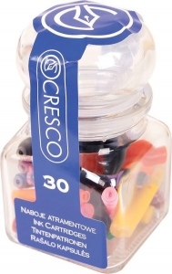 Rašalo kapsulės CRESCO stikliniame indelyje 30vnt įvairių spalvų