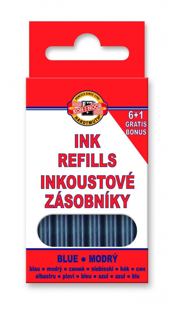 Rašalo kapsulės ilgos, mėlynos, 7vnt Koh-I-Noor