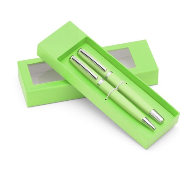 Rašiklių rinkinys COLORADO, šviesiai žalios sp. korpusas, su sidabro sp. detalėmis