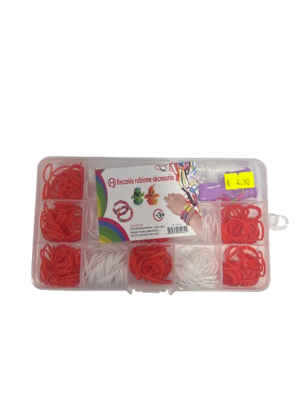 Rinkinys gumyčių,pynimui raudonos,baltos spalvos