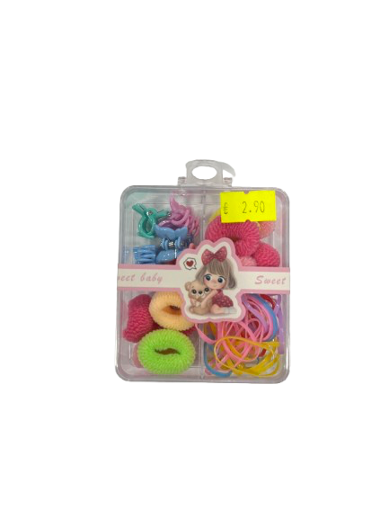 Rinkinys gumyčių,segtukų įv.sp.dėžutėje