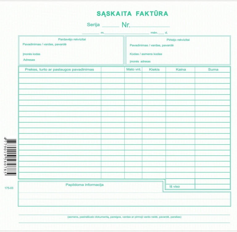 Sąskaita-faktūra 8 colių savekopijuojanti