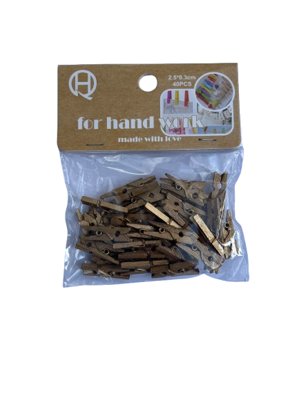Segtukai mediniai 2.5- 0.3cm. aukso sp. 40vnt.