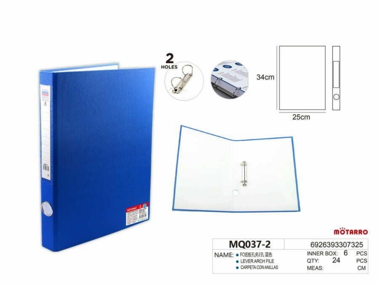 Segtuvas A4 40mm 2-jų žiedų mėlynos spalvos MOTARRO – tai puikus pasirinkimas tiek mokyklai, tiek biurui! Šis segtuvas padės tvarkingai organizuoti dokumentus, užtikrindamas, kad viskas bus lengvai pasiekiama ir tvarkinga.