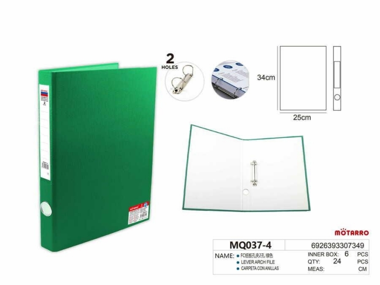 Segtuvas A4 40mm 2-jų žiedų žalios spalvos MOTARRO