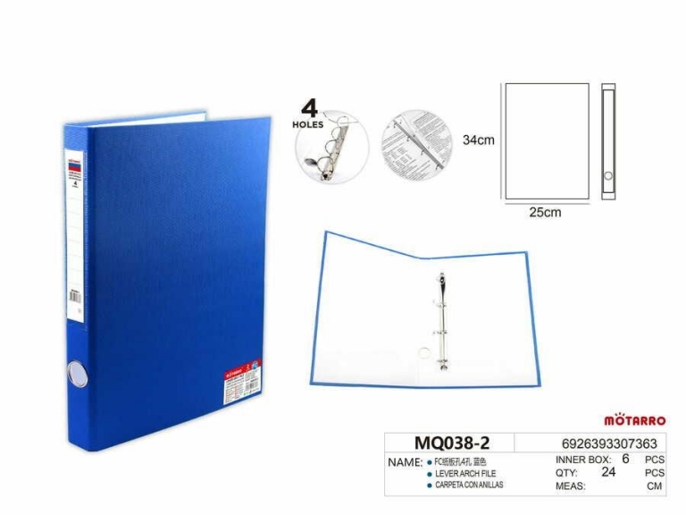 Segtuvas A4 40mm 4-ių žiedų mėlynos spalvos MOTARRO