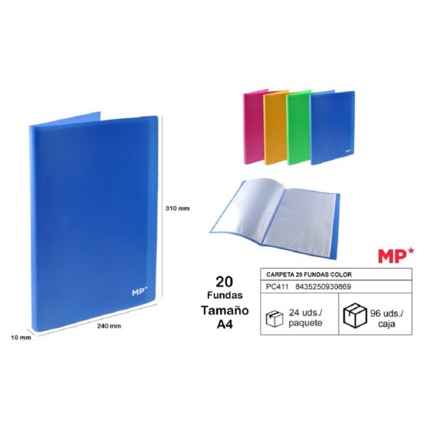 Segtuvas A4 su 20 įmaučių įvairių spalvų viršelis MP