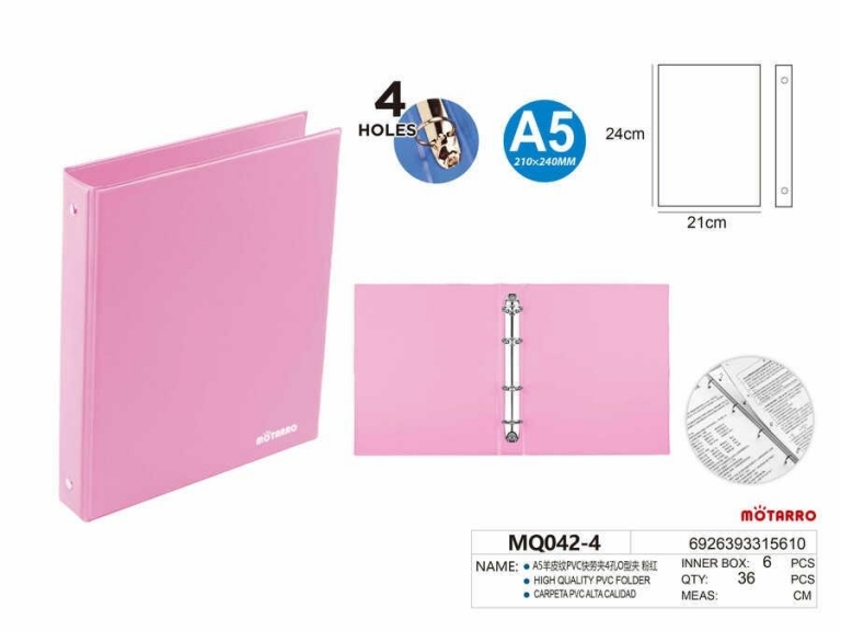 Segtuvas A5 35mm 4-ių skylių rožinės sp MOTARRO