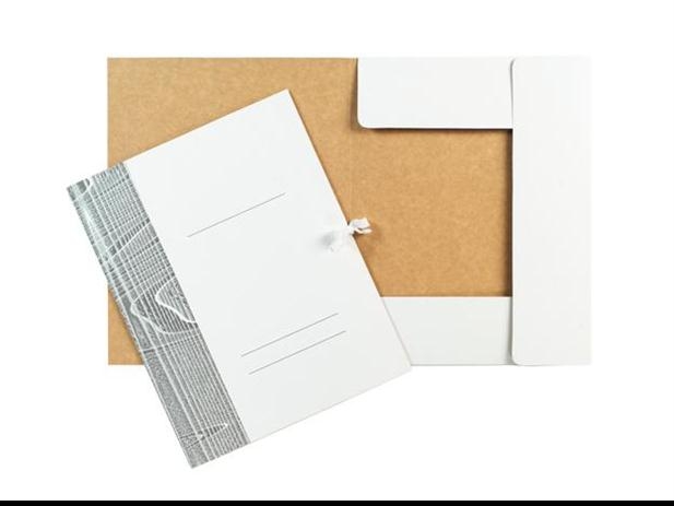 Segtuvėlis kartoninis A4 su raišteliais, 300 gsm, baltas su spauda