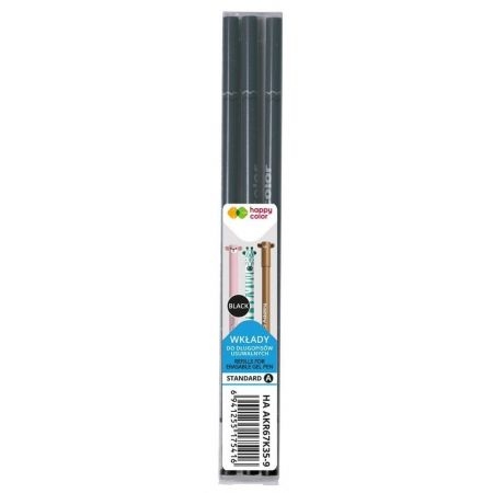 Šerdelės 3vnt.130mm. HAPPY COLOR (save trinantiems Happy Color geliniams rašikliams ) 0.5mm ištrinamos, juodos