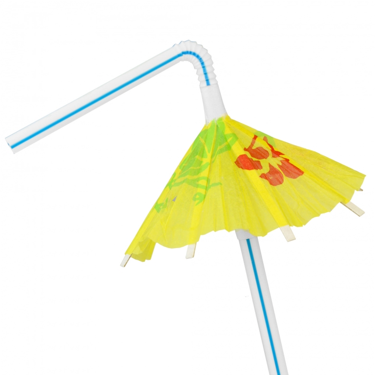Šiaudeliai su skėteliu, plastikiniai, įv. spalvų, 6vnt.