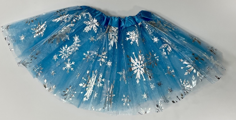 Sijonas žydras su snaigutėmis, ilgis 30 cm