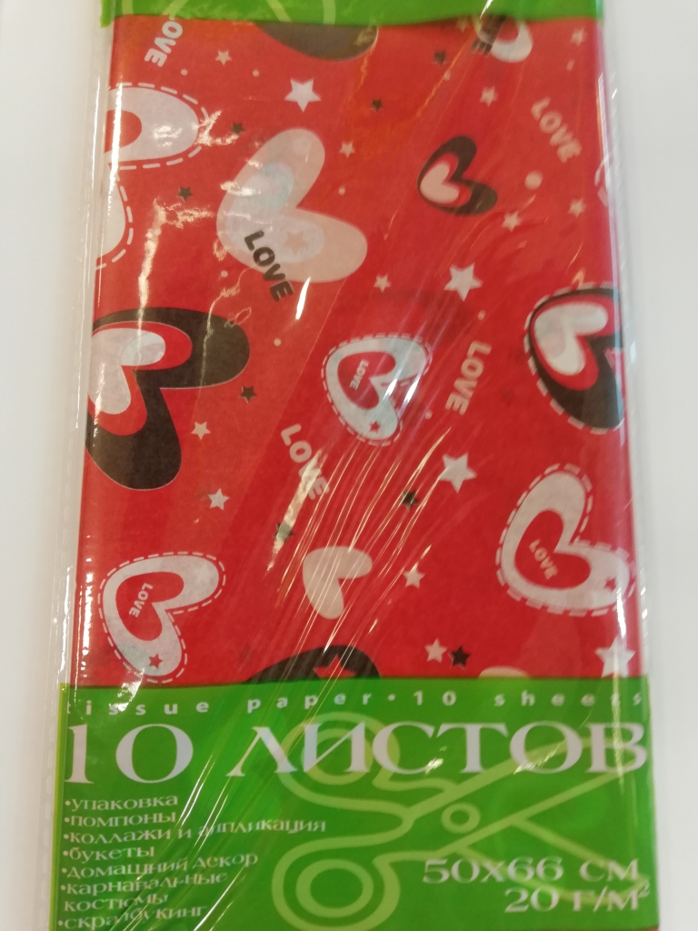 Šilkinis popierius HobbyTime ,10 lapų, širdelės