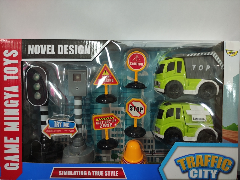 Šiukšliavežė su ženklais