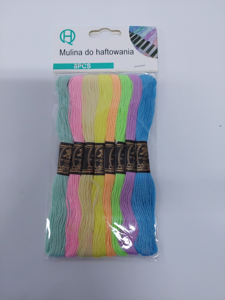Atraskite siuvinėjimo džiaugsmą su mūsų siuvinėjimo siūlais, kurie suteikia galimybę kurti nuostabius meno kūrinius! Šis rinkinys, sudarytas iš 8 skirtingų spalvų, puikiai tinka tiek pradedantiesiems, tiek patyrusiems siuvinėjimo entuziastams. Kiekvienas siūlas yra 8 metrų ilgio, todėl turėsite pakankamai medžiagos įvairiems projektams.