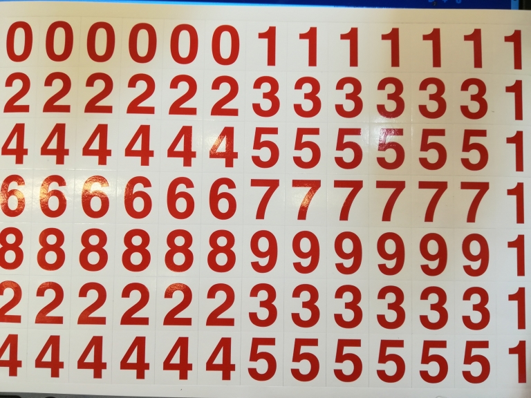 Skaičiai raudonos spalvos 270x200mm 91skaičių