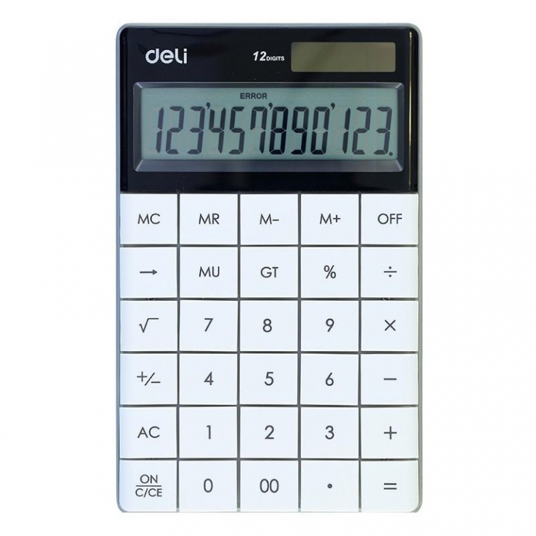 Skaičiuotuvas su 12 funkcijų ir dideliu ekranu, baltos spalvos DELI