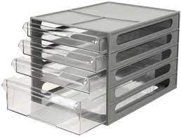 Skaidrūs 4 stalčiukai dokumentams A4, pilkas korpusas