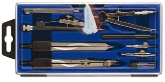 Metalinis skriestuvas plastikinėje dėžutėje su grafitais ir papildomais preidais.
