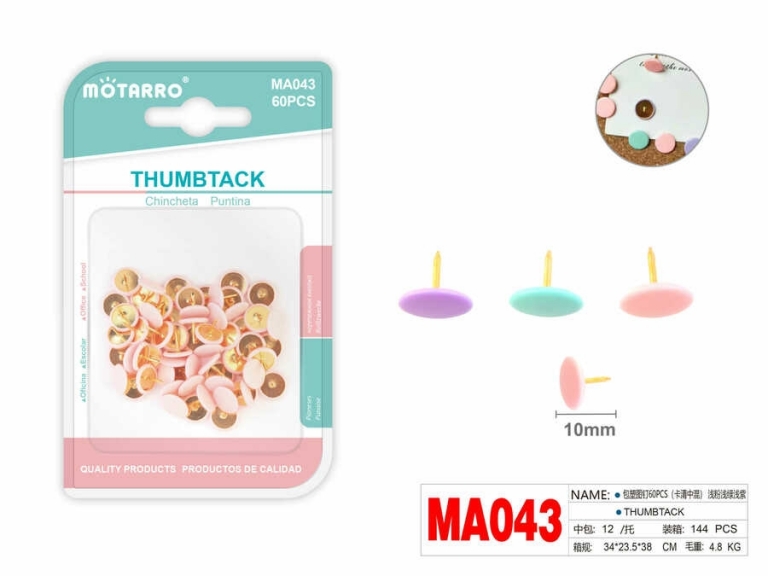 Atraskite nuostabius MOTARRO smeigtukus, kurie puikiai tiks tiek kūrybiškiems projektams, tiek kasdieniam naudojimui. Šie 10mm ilgio smeigtukai ne tik yra funkcionalūs, bet ir džiugina akį savo pastelinių spalvų gama. Idealiai tinka įvairiems amatams, dekoro elementams bei organizavimui!