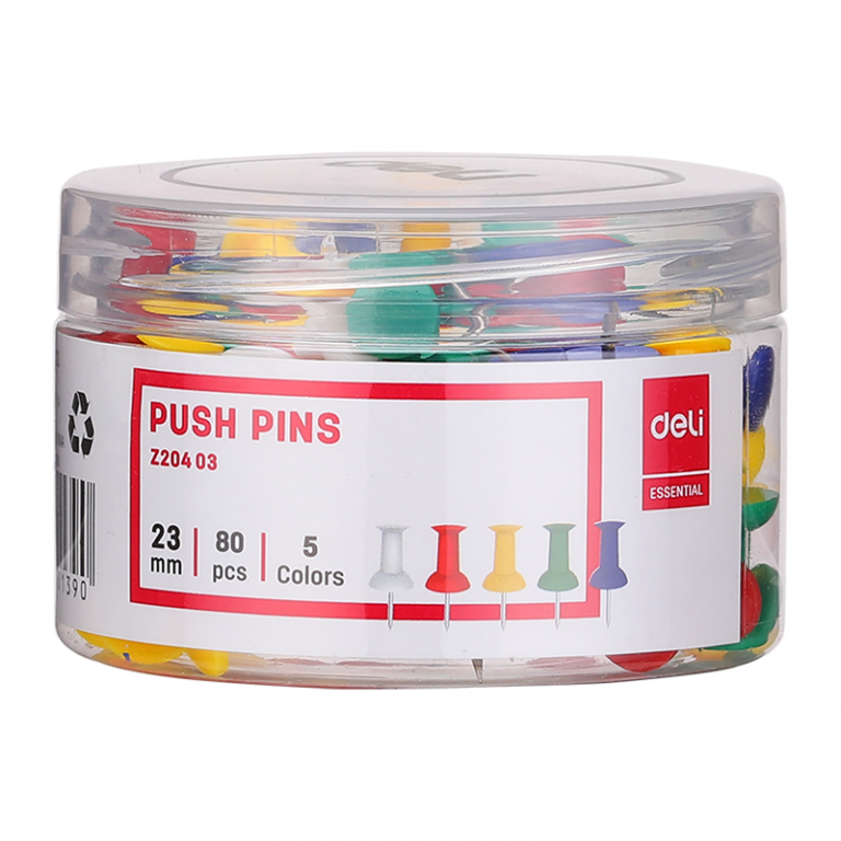 Smeigtukai 23mm plastikine galvute 5 spalvų 80vnt., Deli