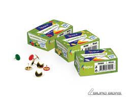 Spalvoti. Metaliniai, su apvalia galvute. Dėžutėje 100 vnt.