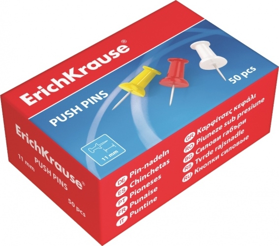Smeigtukai kamštinei lentai 50vnt., įv. spalvų