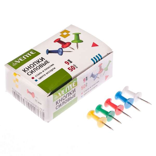 Smeigtukai kamštinei lentai deVENTE, 50vnt/pak, įvairių spalvų galvutės