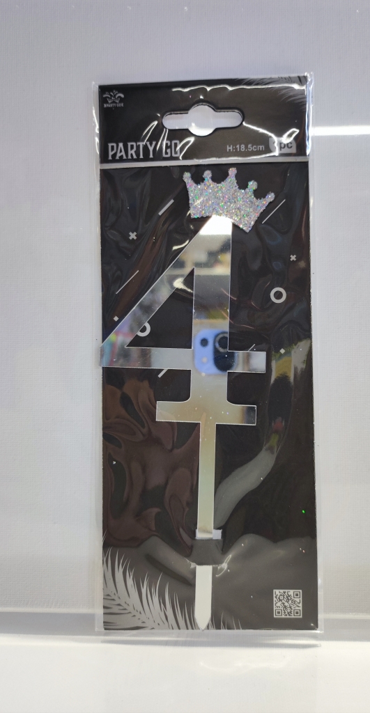 Smeigtukas tortui skaičius "4" su karūna sidabro sp.