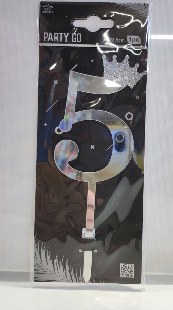 Smeigtukas tortui skaičius "5" su karūna sidabro sp.