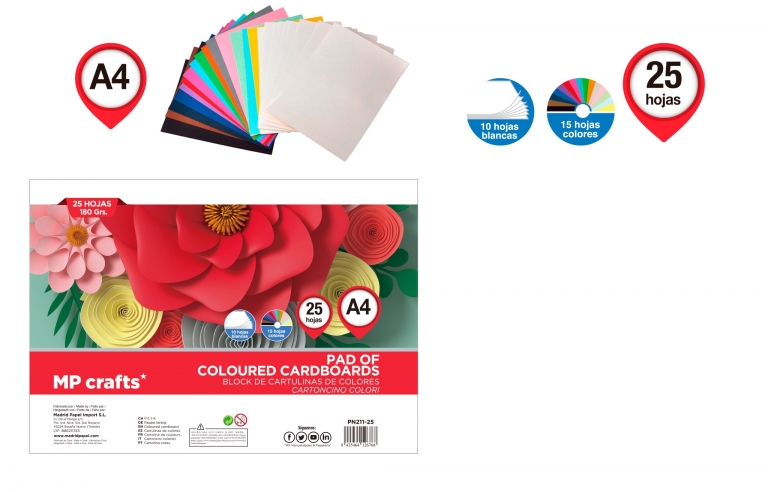Spalvotas kartonas A4 įv.spalvų 180 g. 25l
