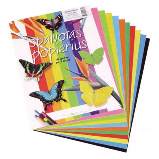 Spalvotas popierius A4, 80g 50 lapų, ryškių spalvų