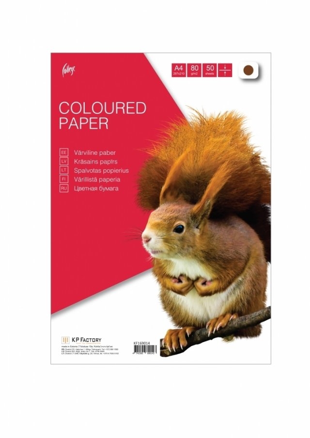 Spalvotas popierius College, A4, 80g, rudos spalvos, 50 lapų
