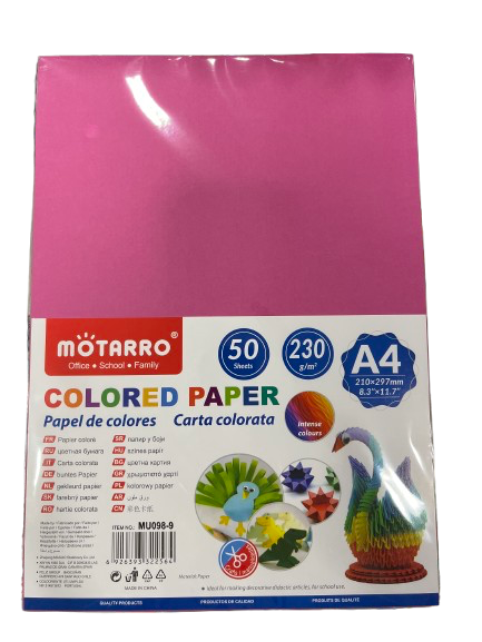 Spalvotas popierius MOTARRO 230gr 50lapų rožinės sp.
