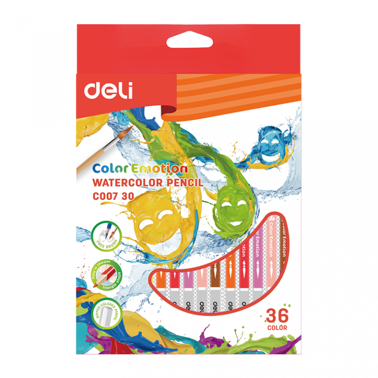 Spalvoti akvareliniai pieštukai trikampiai 36 spalvų+teptukas Color Emotion Deli
