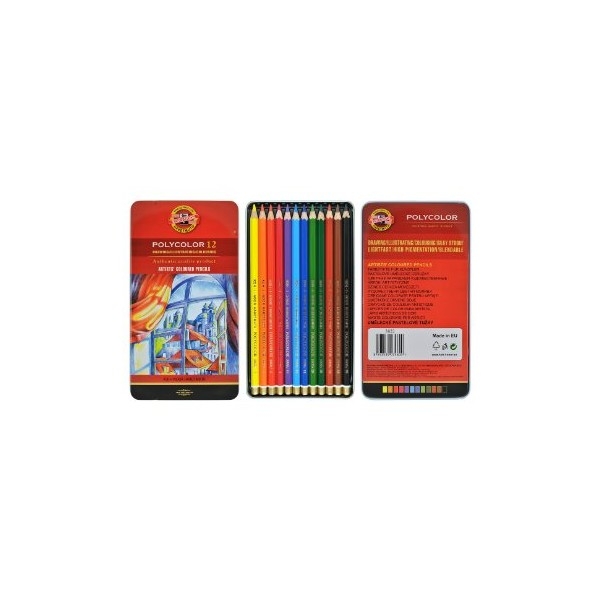 Spalvoti pieštukai dailei "POLYCOLOR" Koh-I-Noor, 12 spalvų