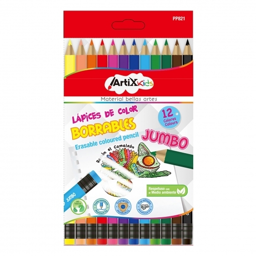 Spalvoti pieštukai ištrinami Jumbo 12 sp