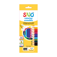 Spalvoti pieštukai ištrinami SIVO 12 sp. su trintuku ir drožtuku
