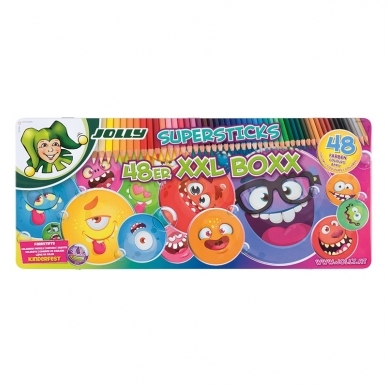 Spalvoti pieštukai KINDERFEST XXL SUPERHEROES, Jolly, 48 spalvos, metalinėje dėžutėje