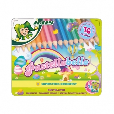Spalvoti pieštukai PASTELLOBELLO, Jolly, 16 spalvų, 1 spalvinimo knygelė