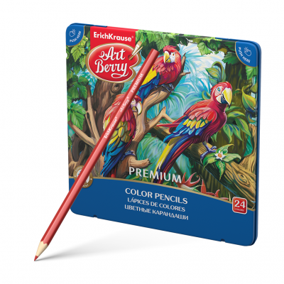Spalvoti pieštukai Premium Art Berry ErichKrause, šešiabriauniai, 24 spalvų, metalinėje dėžutėje