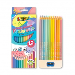 Spalvoti pieštukai tribriauniai su drožtuku Premium Kolori Penmate, 12 pastelinių spalvų
