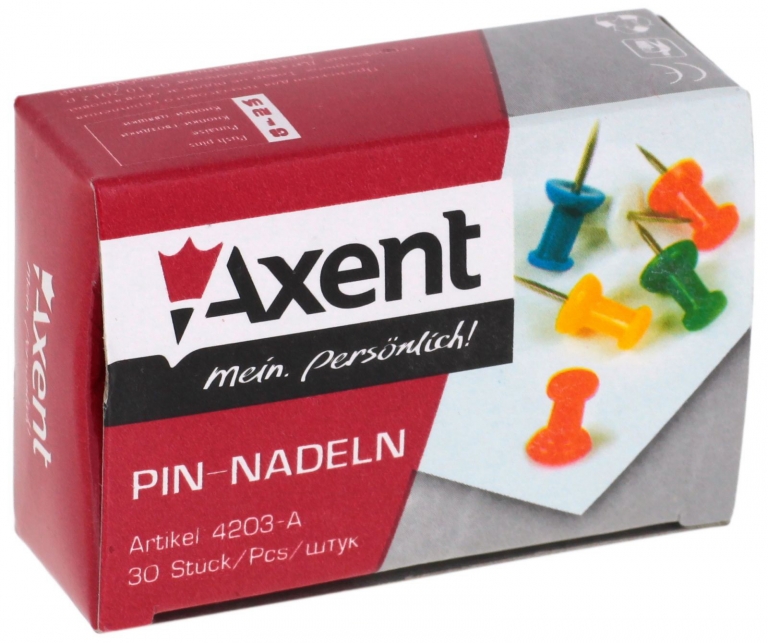 Spalvoti smeigtukai kamštinei lentai AXENT, 30 vnt., įvairių sp